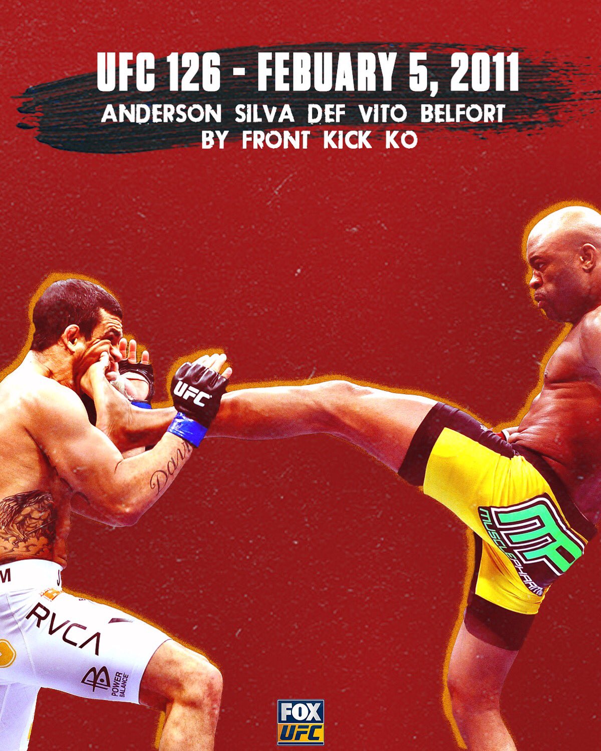 In the ufc, 2011 was the year of the front kick. Brent brookhouse november 1, 2020, 1:42 am Anderson silva's front kick to vitor's face. Catching brazilian rival vitor belfort in the face with a front kick that finished the fight on the spot. Following anderson silva's epic knock out victory over vitor belfort at ufc 126, the media was buzzing about the fantastic kick that lead to the finish.fans around the world were in awe as silva lifted his left leg, and extended his foot to the jaw of his challenger, dropping him as a result. Ufc champion anderson silva took on vitor belfort and came out victorious with a front kick that was considered legendary. Silva and belfort are two of the biggest stars in brazilian mma ever, and on february 5, 2011, they met in the main event of ufc 126.at the time, silva was the ufc middleweight champion and was coming off of an incredible comeback win over chael sonnen. Sonnen aug / 07 / 2010: It was exactly 10 years ago today that anderson silva knocked out vitor belfort with a front kick in the main event of ufc 126. 5, 2011, in las vegas, nevada. In a fight that was planned as far back as. The anderson silva front kick video from ufc 126 has been stirring up quite a bit of conversation throughout the mma community. Anderson silva front kick to the face!